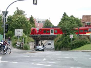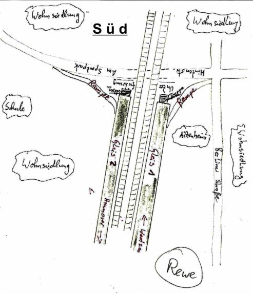 Der Weg eines Fahrgastes im Rollstuhl, der aus Westen kommt (Hirtenstraße / Berliner Straße) und Richtung Hannover möchte, ist dann zwar sehr weit und kompliziert, er ist aber großteils barrierefrei.