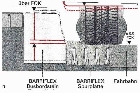 • BARRIFLEX Busbord - in Zusammenarbeit mit Continental entwickelt Eine neuartige Produktreihe, die durch die Verwendung nur zweier Bordhöhen und dem optionalen Einsatz einer Spurplatte, ermöglicht nahezu den Bau aller denkbaren Haltestellenkonstellationen